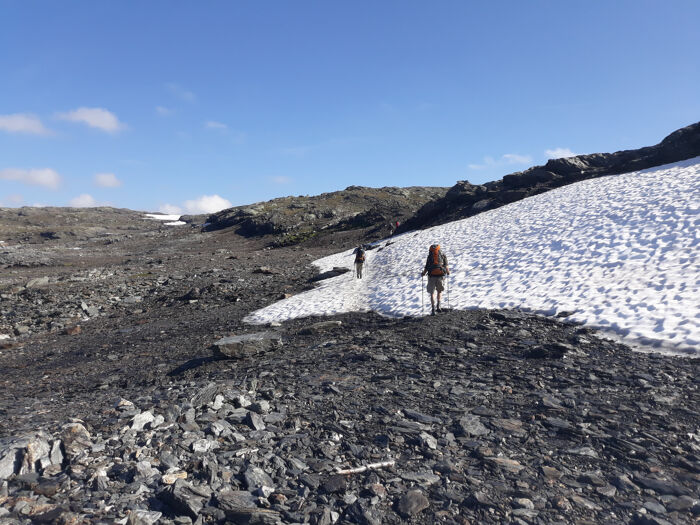 rotsplaten of gruishelling. Ook het oversteken van een sneeuwveld kan voorkomen tijdens de tocht. Soms loop je langs steile hellingen. Lastige stukken zijn meestal goed beveiligd, bijvoorbeeld met staalkabels of trap.