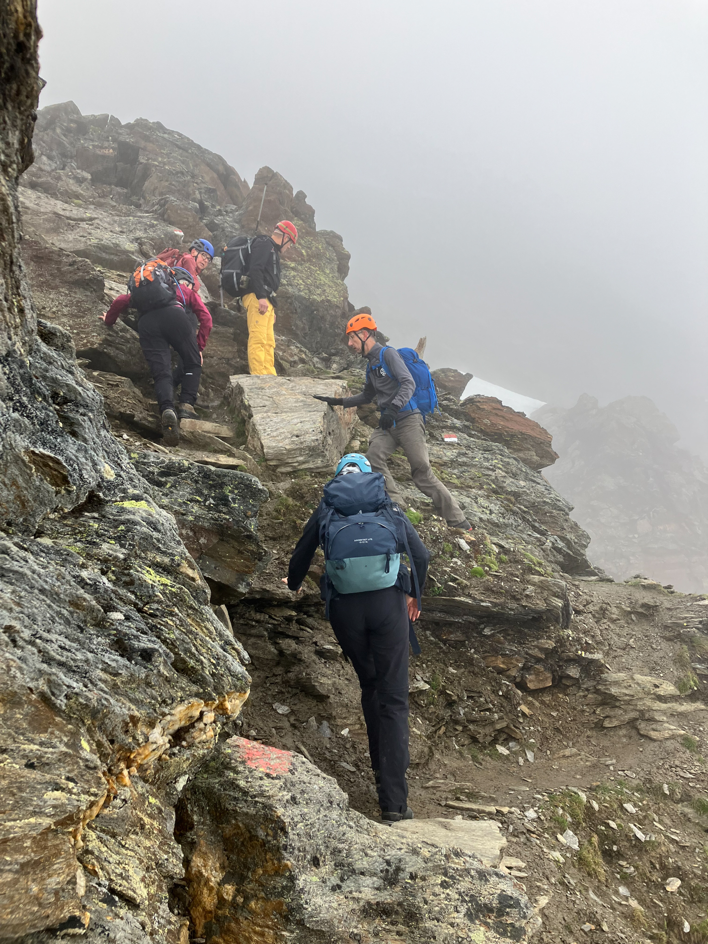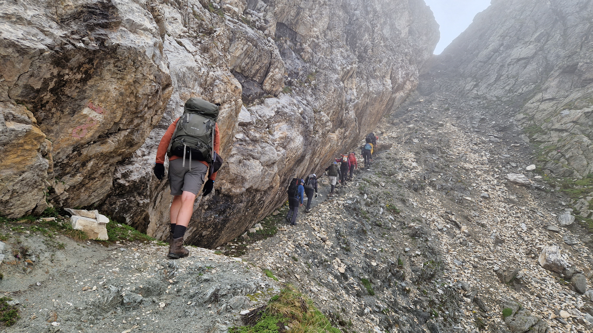 Tijdens deze huttentocht volg je niet alleen goed begaanbare bergpaden, maar loop je ook door ongebaand terrein. Dit kan bestaan uit blokkenterrein, rotsplaten of steile gruis- en grashellingen. Het moeten oversteken van steile sneeuwvelden kan eveneens voorkomen. Daarnaast kunnen eenvoudige klimpassages (UIAA I) van enkele meters voorkomen