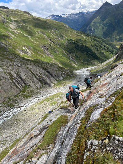 We starten in het Tauerntal en eindigen in het Virgental. De tocht leidt ons langs de randen van gletsjers, met voortdurend uitzicht op machtige bergreuzen. Hoewel de tocht grotendeels over paden gaat, langs kleine bergbeekjes en meertjes, vereist het hier en daar ook wat klauterwerk, en soms steken we sneeuwvelden over. Tredzekerheid is noodzakelijk op deze tocht. Het lopen over grote blokken en het passeren van steile passages voorzien van staalkabels vereisen behendigheid. In lastige passages zetten we regelmatig onze helm op.