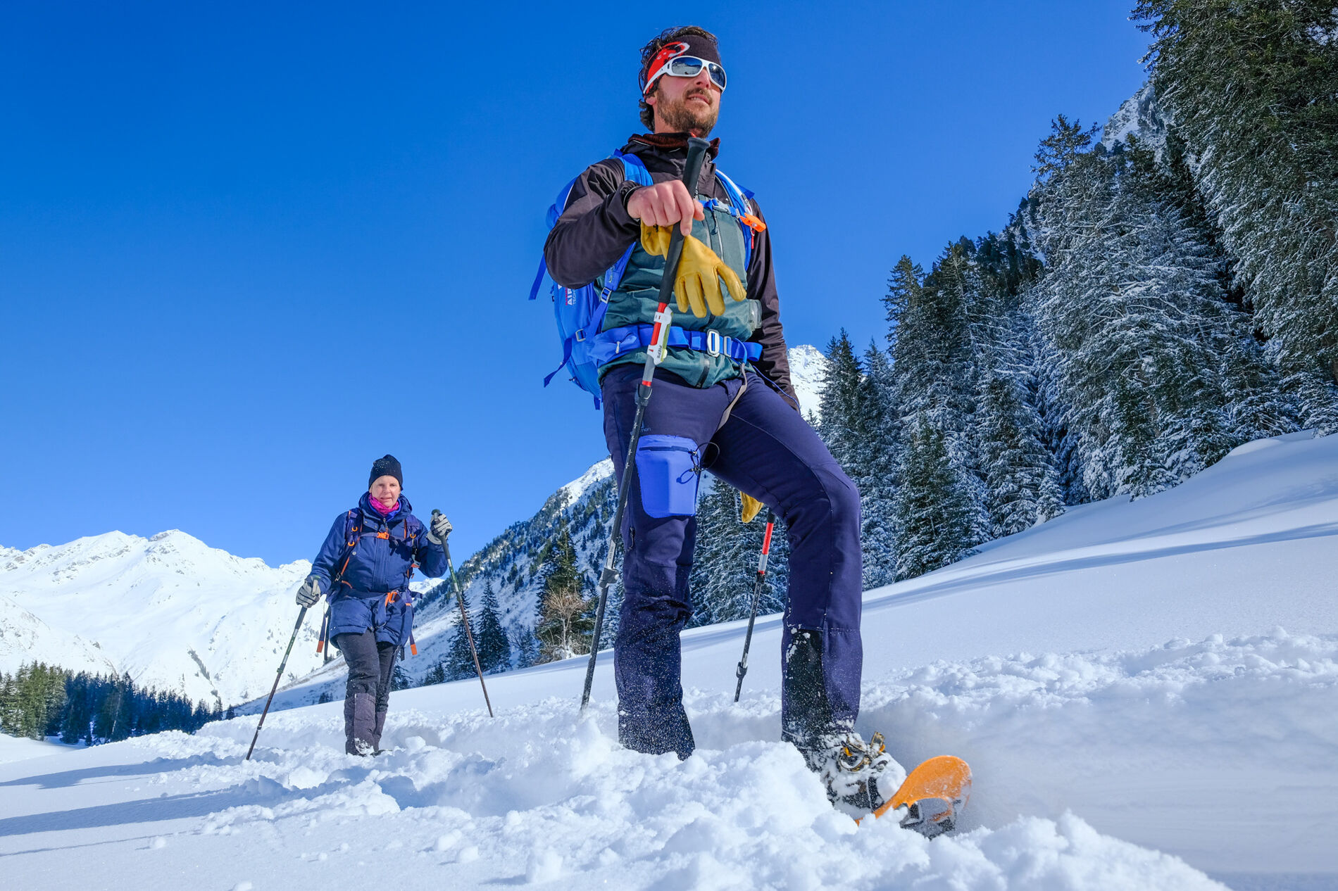 Het lopen met sneeuwschoenen kost meer kracht en energie dan bergwandelen in de zomer. Het is belangrijk dat je een uitstekende conditie hebt.