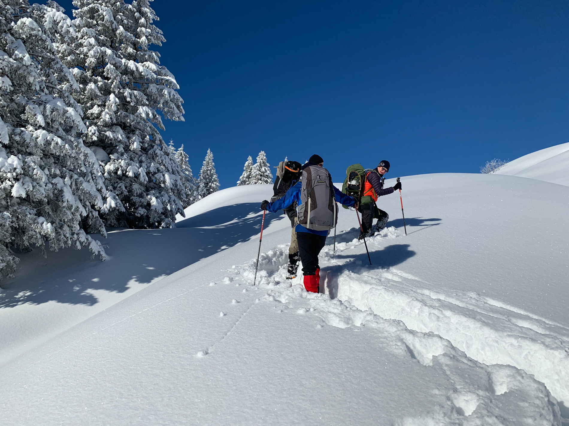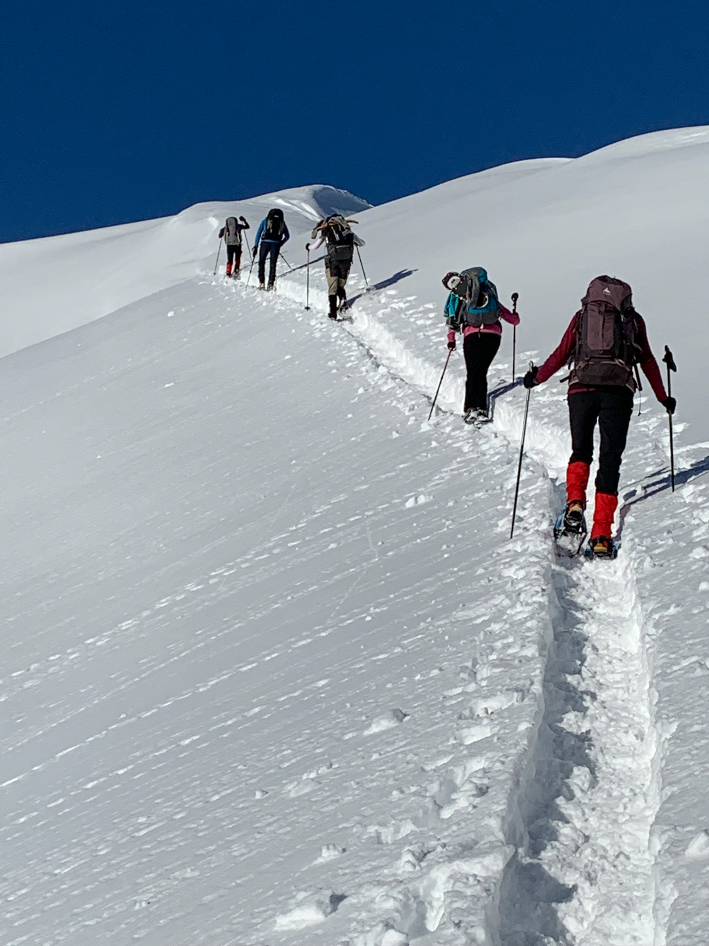 Het lopen met sneeuwschoenen kost meer kracht en energie dan bergwandelen in de zomer. Het is belangrijk dat je een uitstekende conditie hebt.
