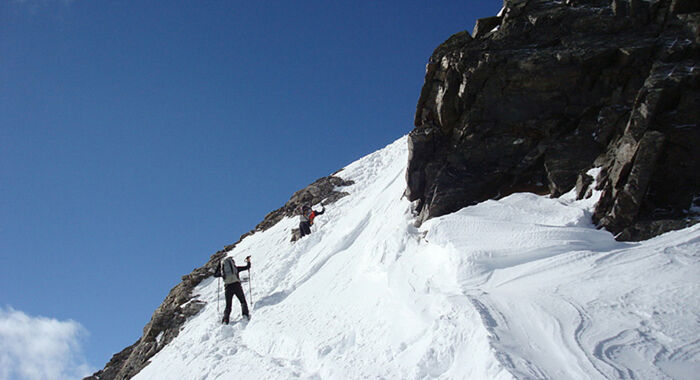 De Winnebachseehütte in de Stubaier Alpen is een perfecte standplaats voor toerskiërs. De hut ligt aan de Winnebachsee en is omgeven door 3000’ers, zoals de Breiten Grieskogl (3287 m) en de Winnebacher Weisskogel (3185 m), ideaal voor mooie toerskitochten. Om de 3054 meter hoge Hohen Winnebachspitze te kunnen bereiken, moeten we eerst vanaf de Putzenscharte een stukje abseilen. We sluiten de week af met een beklimming van de Larstigsscharte (3013 m), waarna je een prachtige afdaling maakt door het eenzame Larstigtal naar Niederthai. De berghut waar we overnachten, heeft een heerlijk zonneterras met uitzicht op een bevroren waterval.