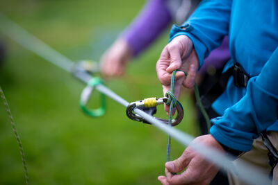 • 1 extra beveiligde HMS karabiner, bijvoorbeeld Petzl Ballock